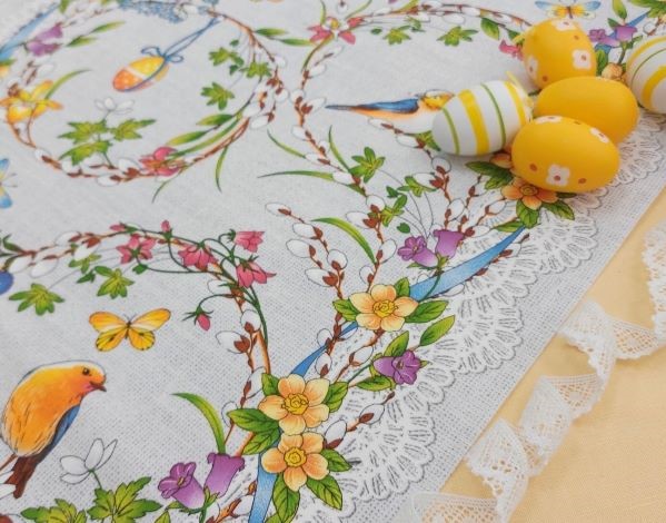 Скатерть из полульна "Альпийская ромашка-розовые цветы"