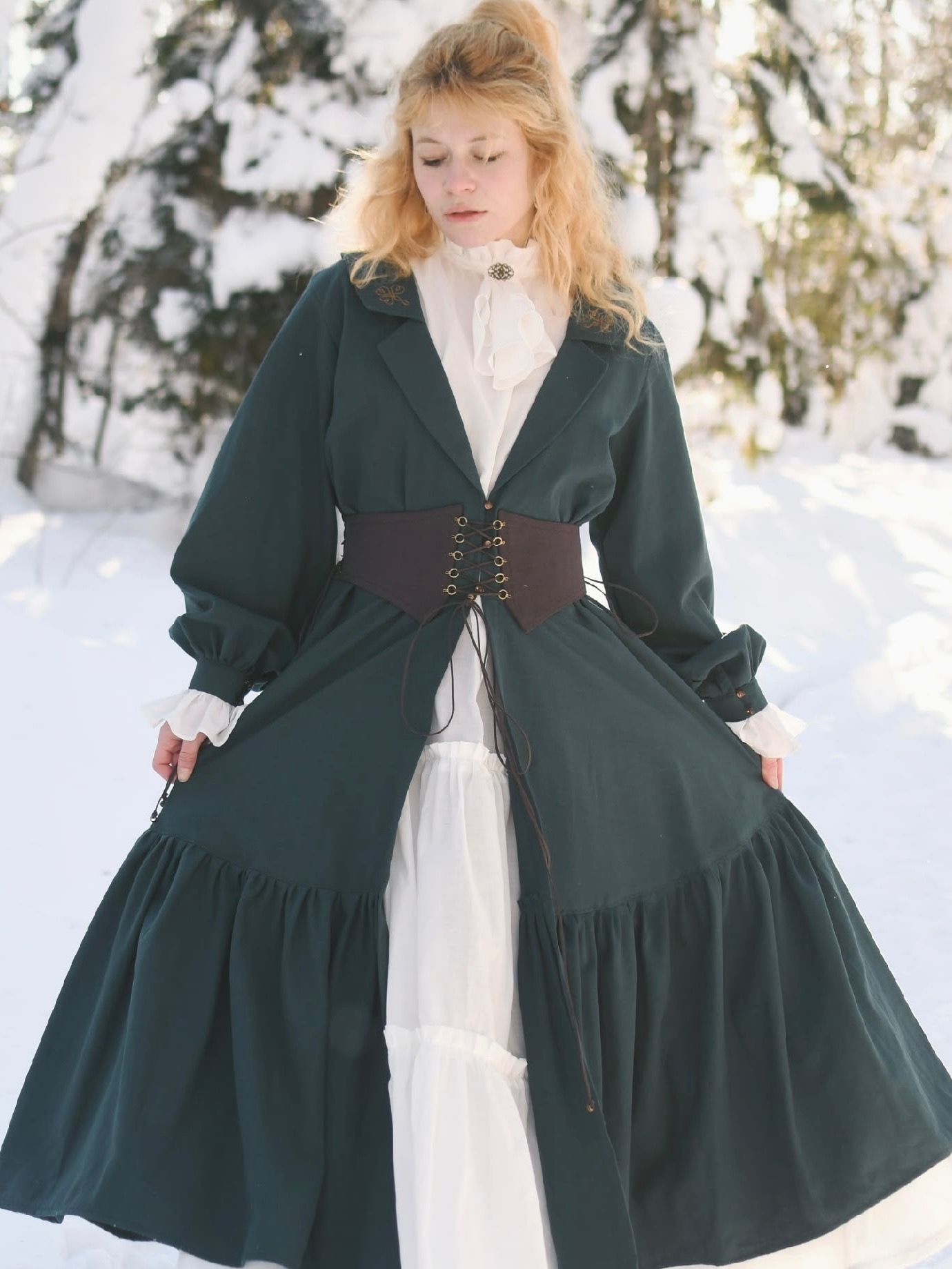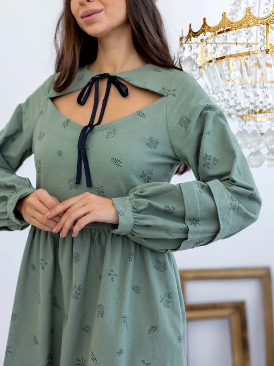 Платье из теплого хлопка "Сухоцветы" цв.т.морозно-зеленый