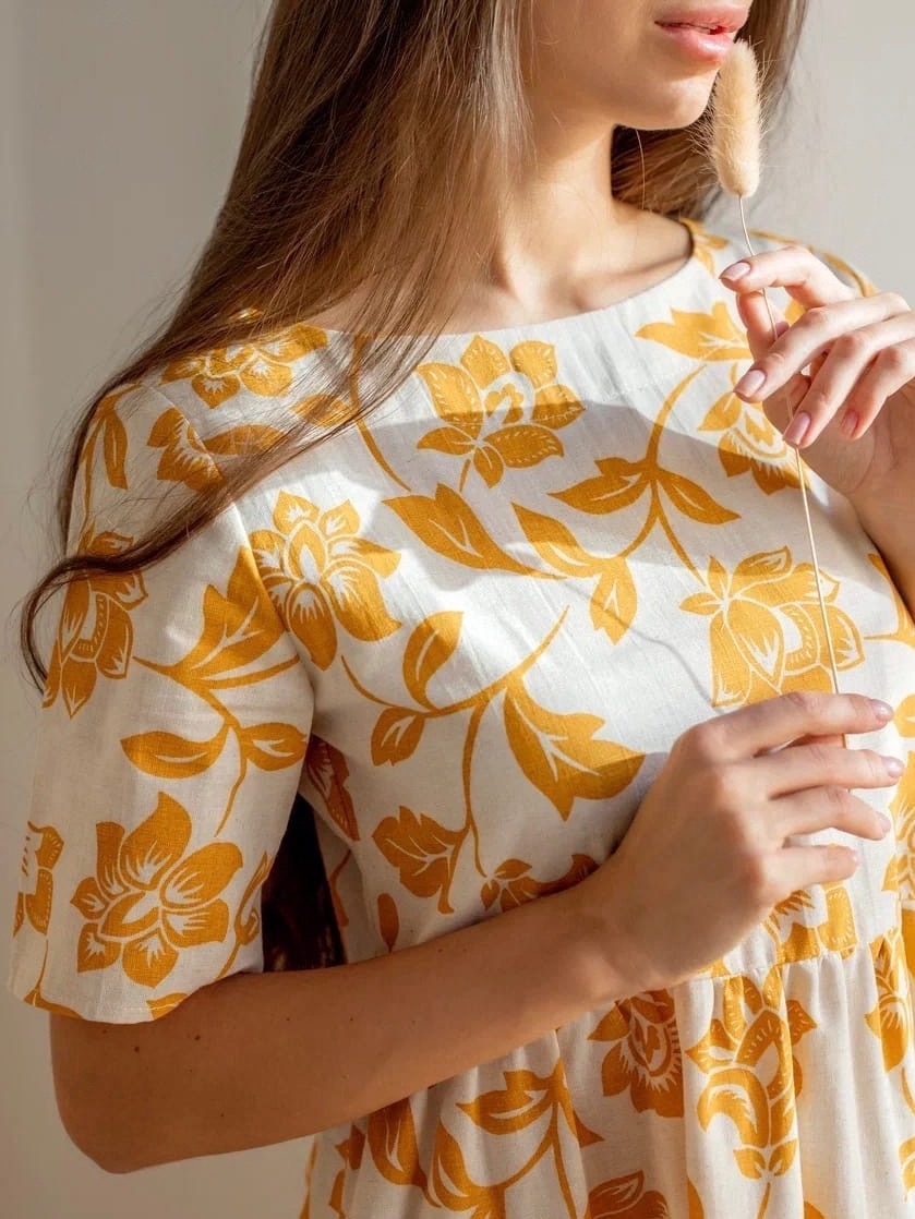 Платье из полульна "Оранжевые цветы"