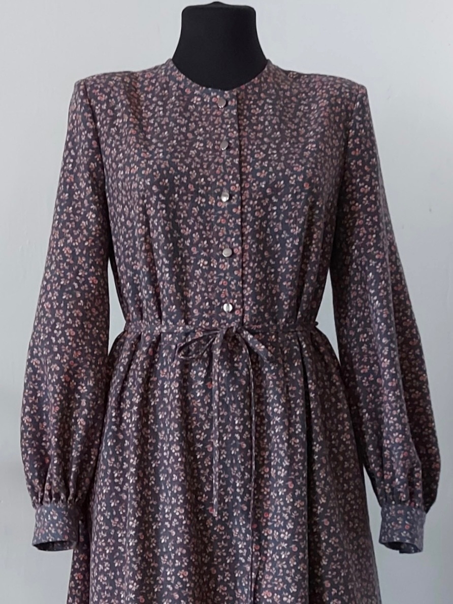 Платье из теплого хлопка "Набойка - белые цветочки" цв.серый меланж