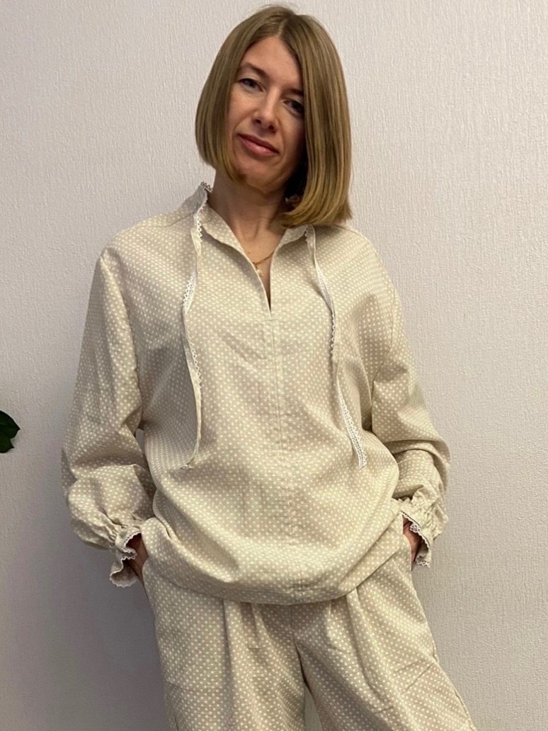 Домашний костюм из полульна "Мелкий белый горох (3мм)"
