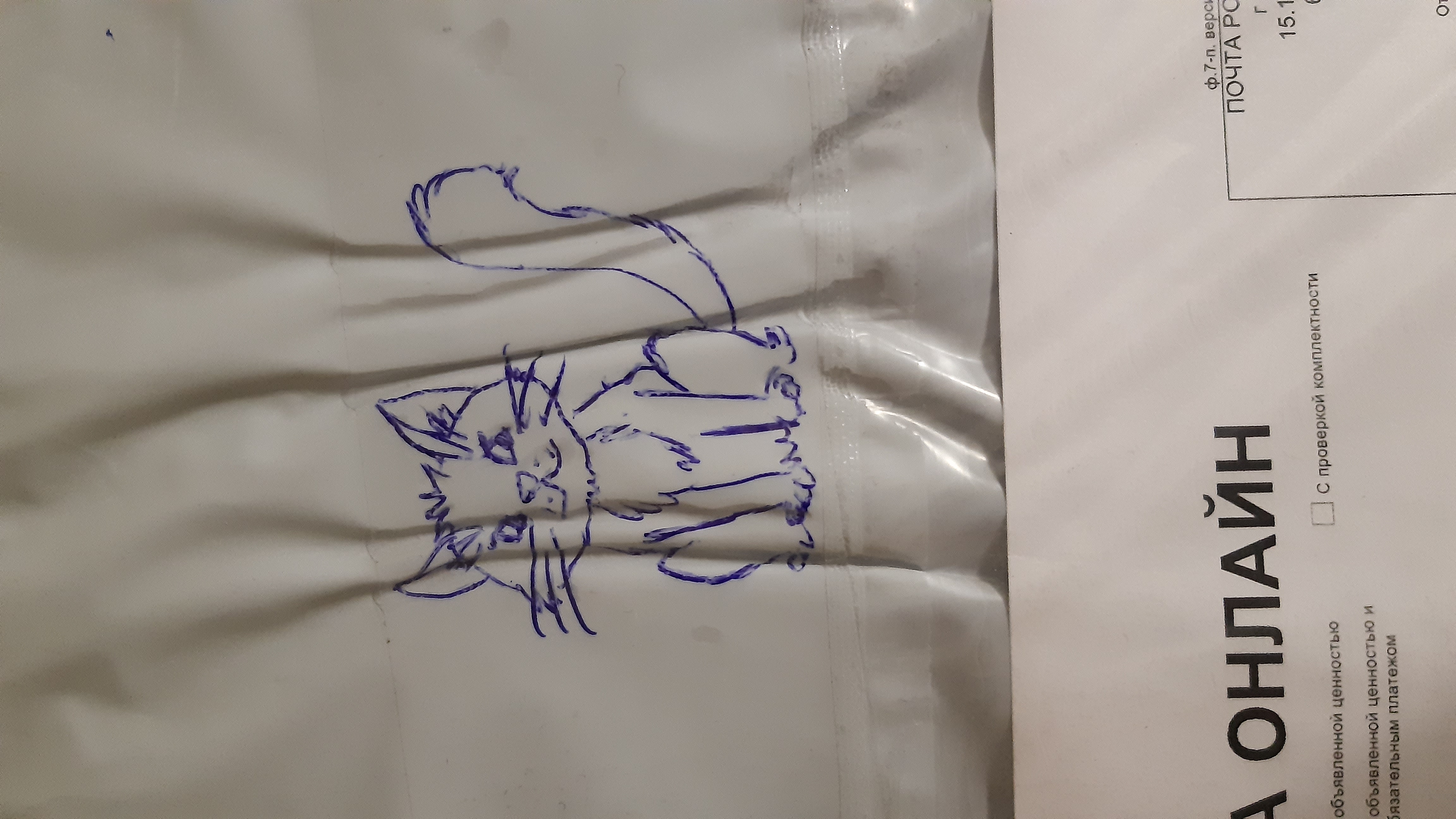 Ткани быстро отправили, качество хорошее. В комментариях к заказу попросила нарисовать котика на упаковке, и посмотрите, какая прелесть! Клиентоориентированность 100%, спасибо большое!