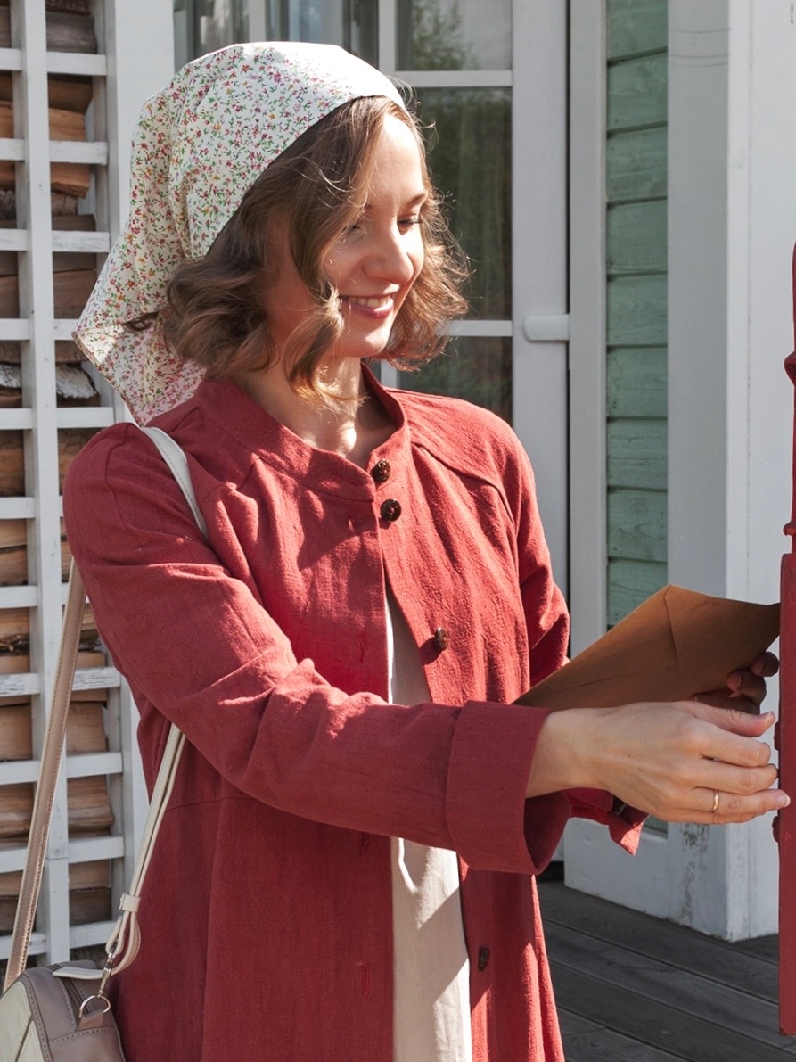 Платье из вареного хлопка "Клетка" цв.коричнево-красный/серый