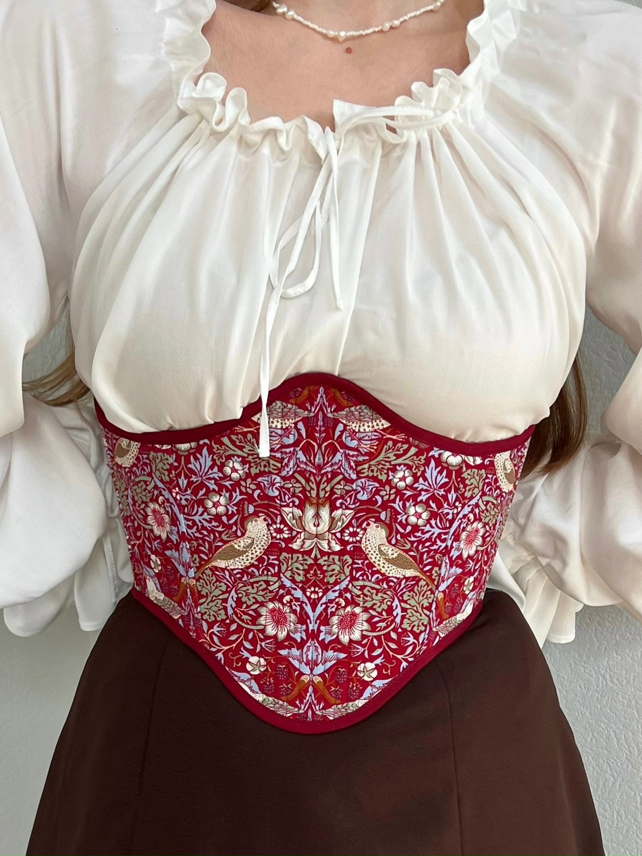 Корсет из интерьерного хлопка "Райские птички" цвет бордово-красный