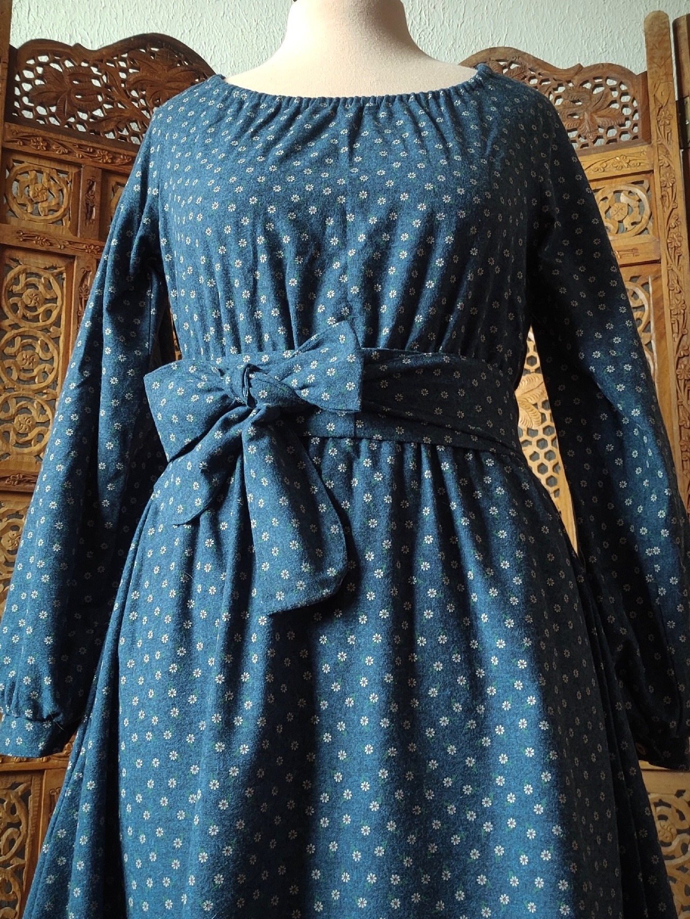 Платье из плательного хлопка "Мелкие ромашки на джинсово-синем меланже"