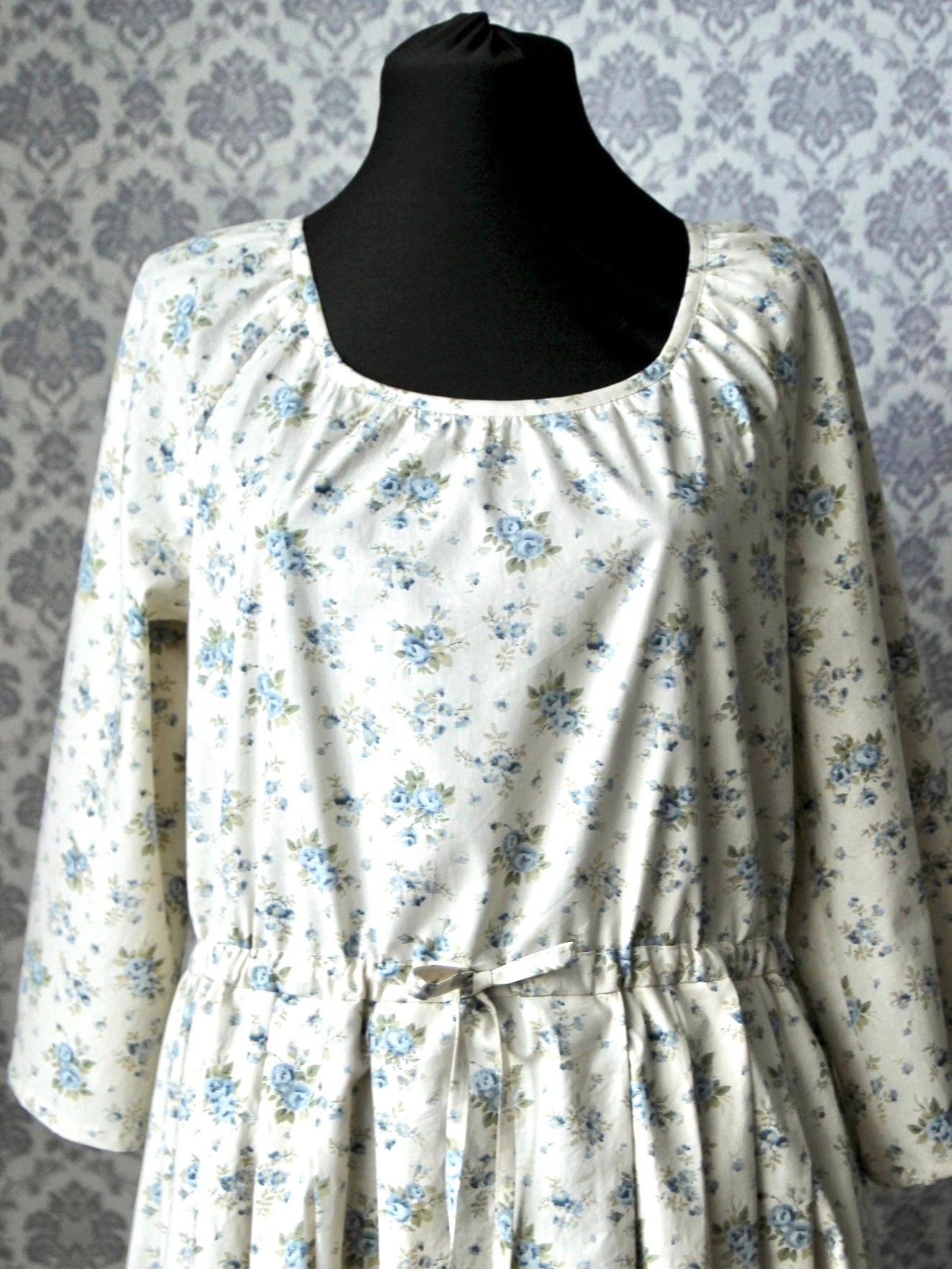 Платье из импортного хлопка "Голубые букетики роз" в бежево-оливковом цвете