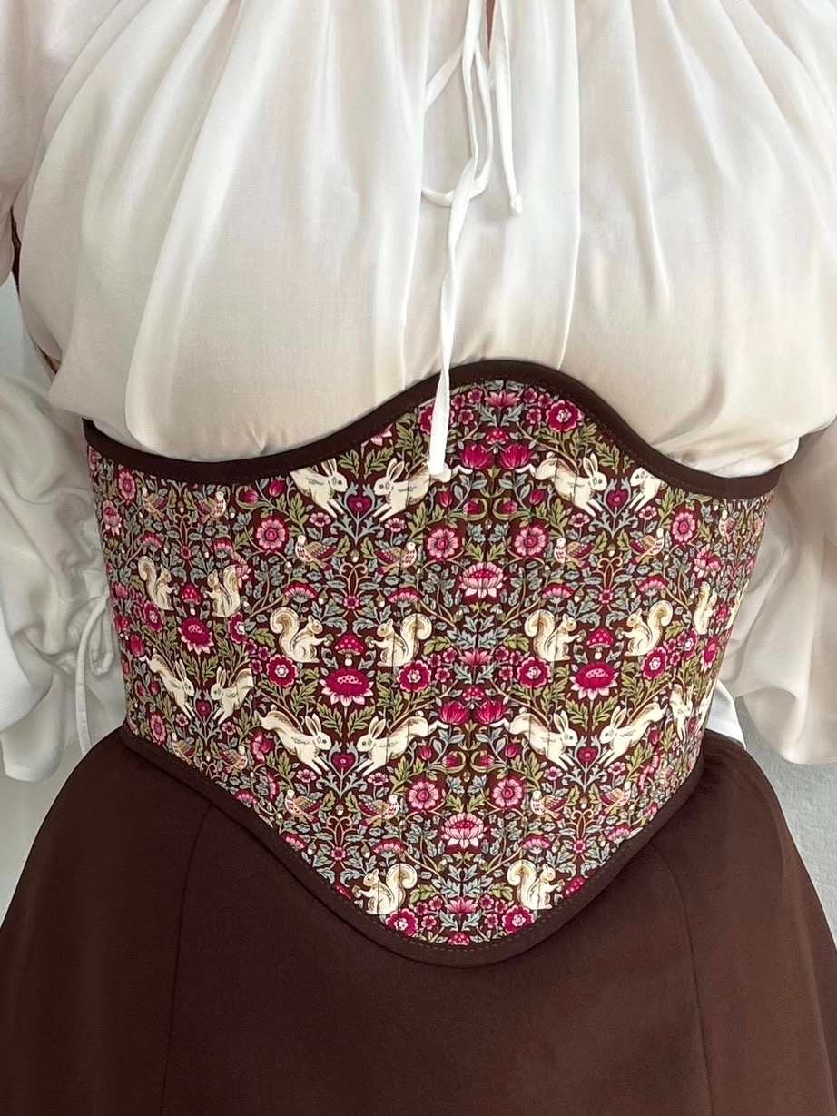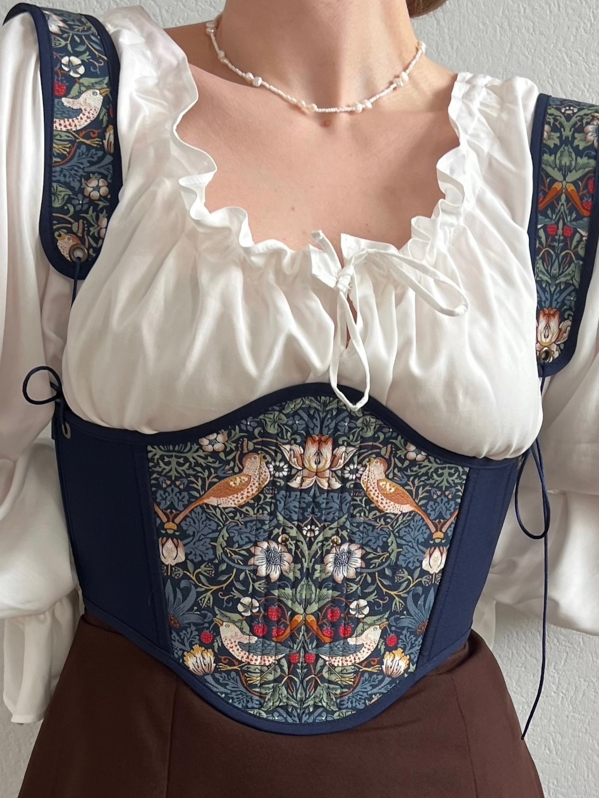 Корсет из интерьерного хлопка "Райские птички" в чернильном цвете