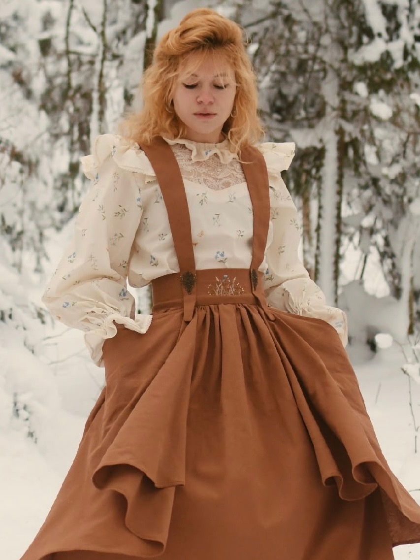 Сарафан из плательного хлопка в коричнево-горчичном цвете