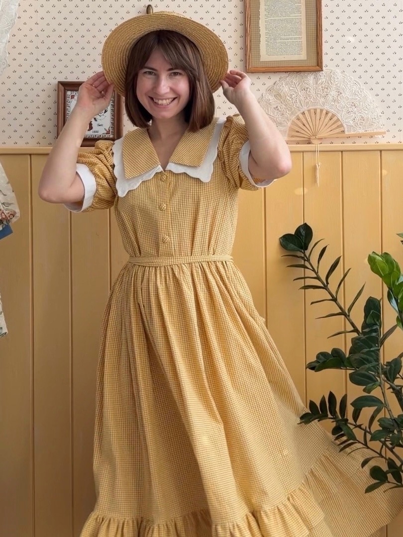 Детское платье из теплого хлопка "Мелкий горох-2 на горчичном"