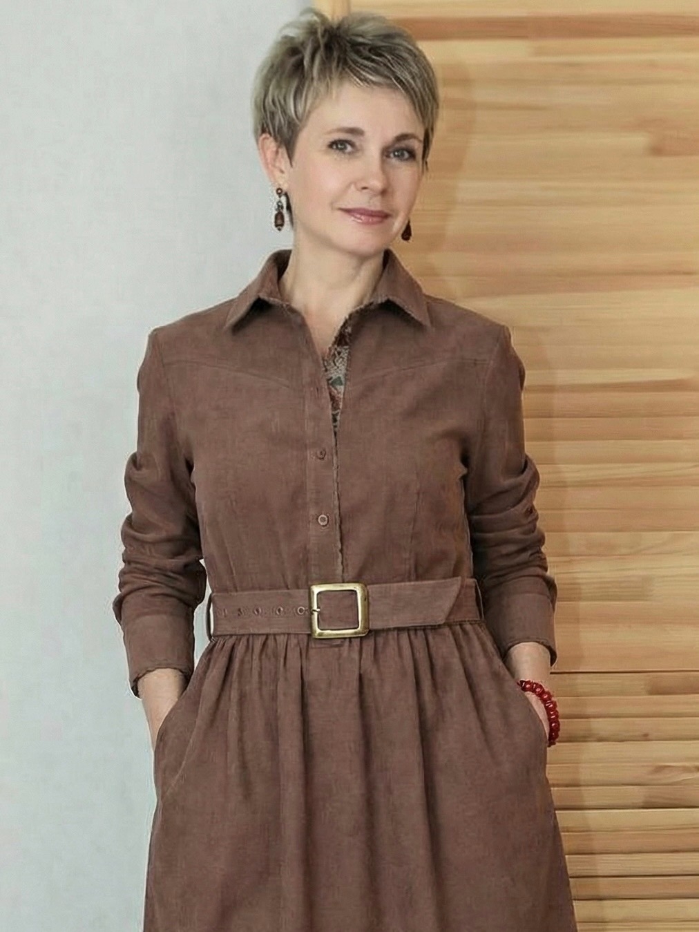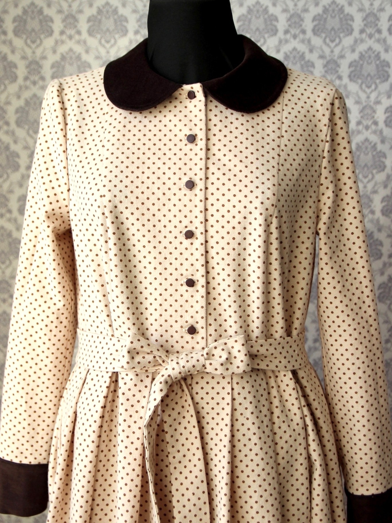 Платье из теплого хлопка в горох в графитово-зеленом цвете