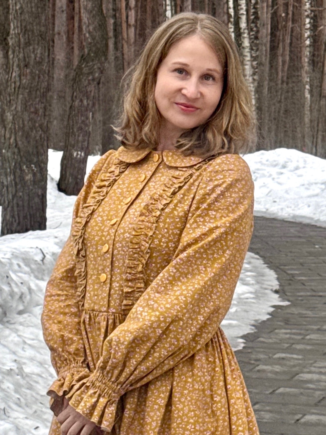 Костюм из вареного хлопка в медово-желтом цвете