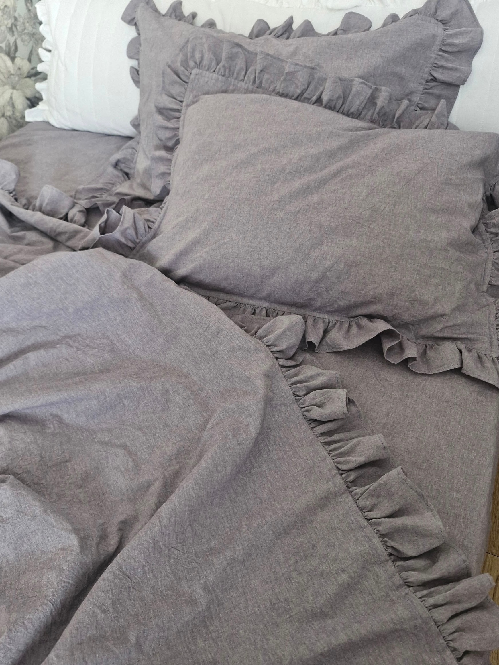 Постельное белье из вареного хлопка в пепельно-сером цвете