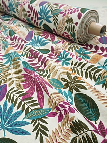 Интерьерный хлопок "Хоровод листьев на св.морозно-мятном", ш.1.5м, хлопок-100%, 240гр/м.кв