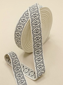 11040 товаровЛента тканая для поясов, 38мм Черный орнамент на суровом