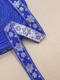 Жак.лента 23мм Серебристые снежинки на васильковом