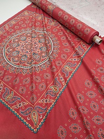 Поплин Барановский платок "Маргарита" с узорным купоном, цв.красный, ш.1.5м, хл-100%, раппорт 100см