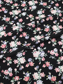 Штапель Премиум "Винтажные букетики из роз на черном", 1.45м, вискоза-100%, 110гр/м.кв