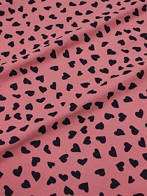 Теплый хлопок "Чернильные сердечки на св.кораллово-брусничном", ш.1.5м, хлопок-100%, 150гр/м.кв