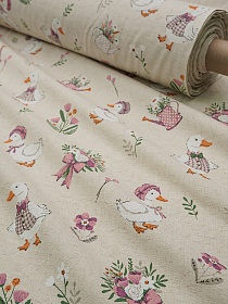 Полулен поэма "Гуси - прованс" (на суровом) цв.розовый, ш.1.5м, лен-30%, хлопок-70%, 155гр/м.кв