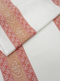 Холст полотенечный жаккард "Ромбы на белом с каймой" цв.красный, СОРТ2, ш.0.5м, лен-30%, хл-70%