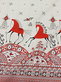 Рогожка "Мезенская роспись - кони", ш.1.5м, хлопок-100%, 165гр/м.кв