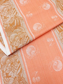 Холст полотенечный жаккард "Урожай" цв.яркий персик/оранжево-коричневый, ш.0,5м, лен-30%, хл-70%