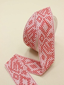 Жак.лента 68мм Алый славянский орнамент на бело-розовом