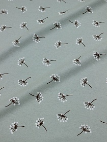 Теплый хлопок "Цветочная веточка на сером с зеленым оттенком", ш.1.48м, хлопок-100%, 150гр/м.кв