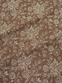 Теплый хлопок "Букеты пионов на глиняно-коричневом", ш.1.5м, хлопок-100%, 160гр/м.кв