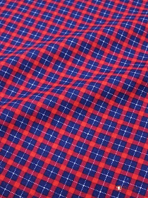 Фланель "Синяя клетка на красно-малиновом", ш.1.5м, хлопок-100%,180гр/м.кв