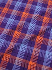 Вареный (стираный) хлопок "Клетка" цв.баклажановый/оранжевый, ш.2.5м, хл-100%, 115гр/м.кв