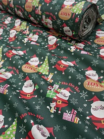 Сатин "Веселый Санта" цв.можжевеловый, ш.1.6м, хлопок-100%, 110гр/м.кв