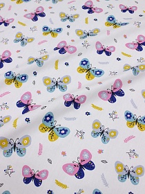Сатин "Яркие бабочки" цв.белый, ш.1.60м, хлопок-100%, 110гр/м.кв