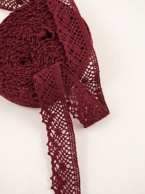 Кружево цв.бордово-вишневый, ш.30мм, хлопок-90%, п/э-10%, 10м, рис.111/17