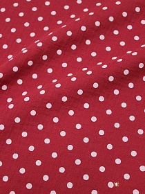 Муслин двухслойный с эф.жатости "Горох на бордово-красном", ш.1.4м, хлопок-100%, 120гр/м.кв