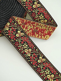 10867 товаровЖак.лента 30мм Красные ягоды (желтые листья) на черном