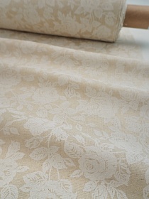 Полулен "Белые розы" (на суровом), ш.1.5м, лен-30%, хлопок-70%, 140гр/м.кв
