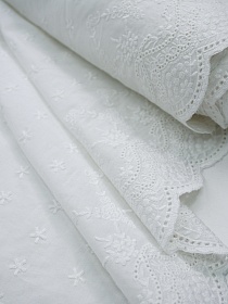Шитье "Цветочки с ажурной каймой" цв.молочно-белый, ш.1.35м, хлопок-100%, батист, 80гр/м.кв