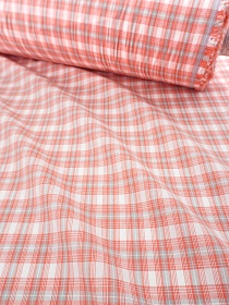 Вареный (стираный) хлопок "Тройная клетка" цв.коралловый/серый, ш.2.5м, хлопок-100%, 105гр/м.кв