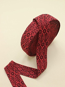 Лента тканая для поясов, 50мм Темно-красный орнамент на черном
