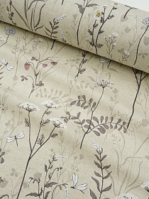 Полулен "Вальс цветов" (на суровом), ш.1.5м, лен-30%, хлопок-70%, 140гр/м.кв