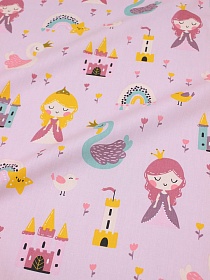 Сатин "Сказочная принцесса" цв.бледно-розовый, ш.1.60м, хлопок-100%, 110гр/м.кв