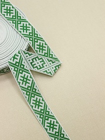 Жак.лента 24мм Зеленый орнамент на белом