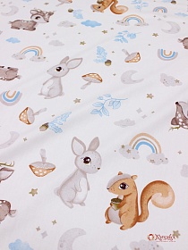 Сатин "Лесная детвора" цв.белый, ш.1.61м, хлопок-100%, 120гр/м.кв