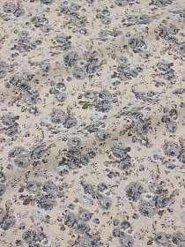Полулен "Серо-голубые розочки" (на суровом), ш.1.5м, хлопок-70%, лен-30%, 140гр/м.кв