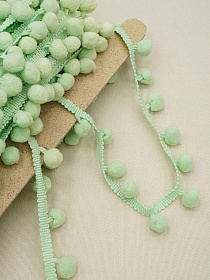 10797 товаровБрак(уценка)Тесьма "Помпоны" цв.салатово-мятный, шир.тесьмы без помпона-8мм; помпон Ø-15мм, п/э-100%