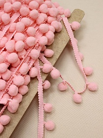 Тесьма "Помпоны" цв.св.розово-коралловый, шир.тесьмы без помпона-10мм; помпон Ø-15мм, п/э-100%
