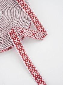 Жак.лента 24мм Красный орнамент-оберег крестики на белом