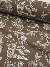 Штапель Премиум "Цветочная мириада" цв.кофейно-серый, ш.1.45м, вискоза-100%, 120гр/м.кв