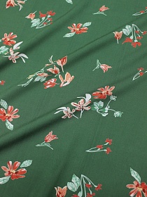 БРАК (цена снижена) Штапель "Цветочная пьеса на винтажно-зеленом", ш.1.43м, вискоза-100%, 120гр/м.кв